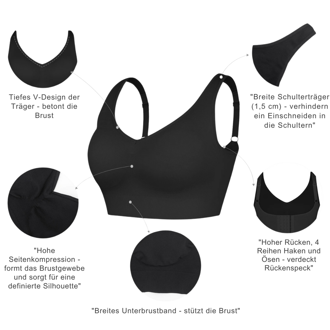 Dank des nahtlosen, bügellosen Designs kannst du unseren Wohlfühl-BH den ganzen Tag lang ohne unangenehme Abdrücke und vor allem Schmerzen tragen.