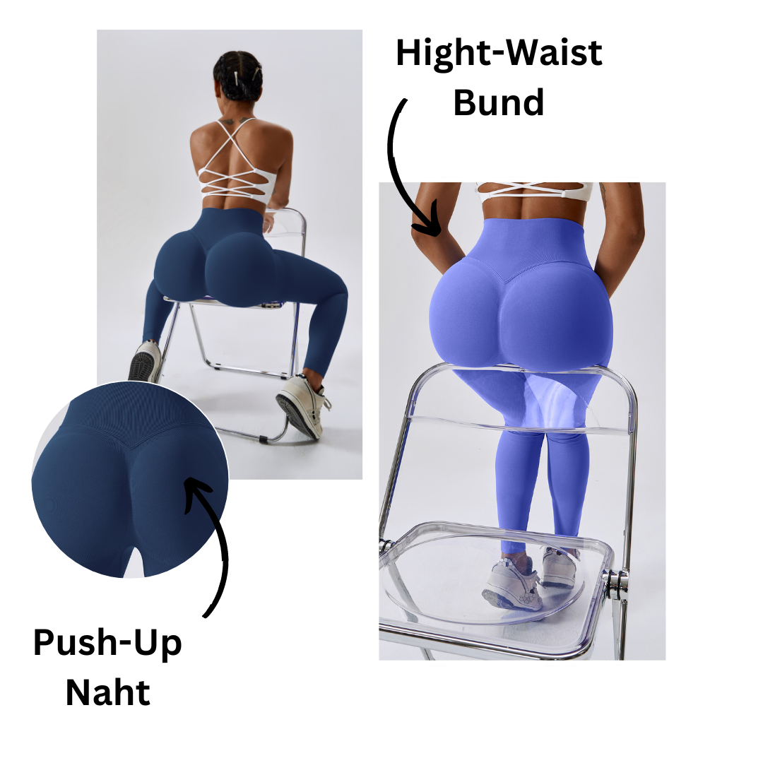 Der High-Waist Bund formt eine schlanke Taille und kaschiert gekonnt deine Problemzonen, während er gleichzeitig für einen sicheren Halt sorgt. Unsere Leggings sind atmungsaktiv und fühlen sich an wie eine zweite Haut. Die spezielle Push-Up Naht hebt den Po hervor, formt ihn natürlich und betont deine Kurven.